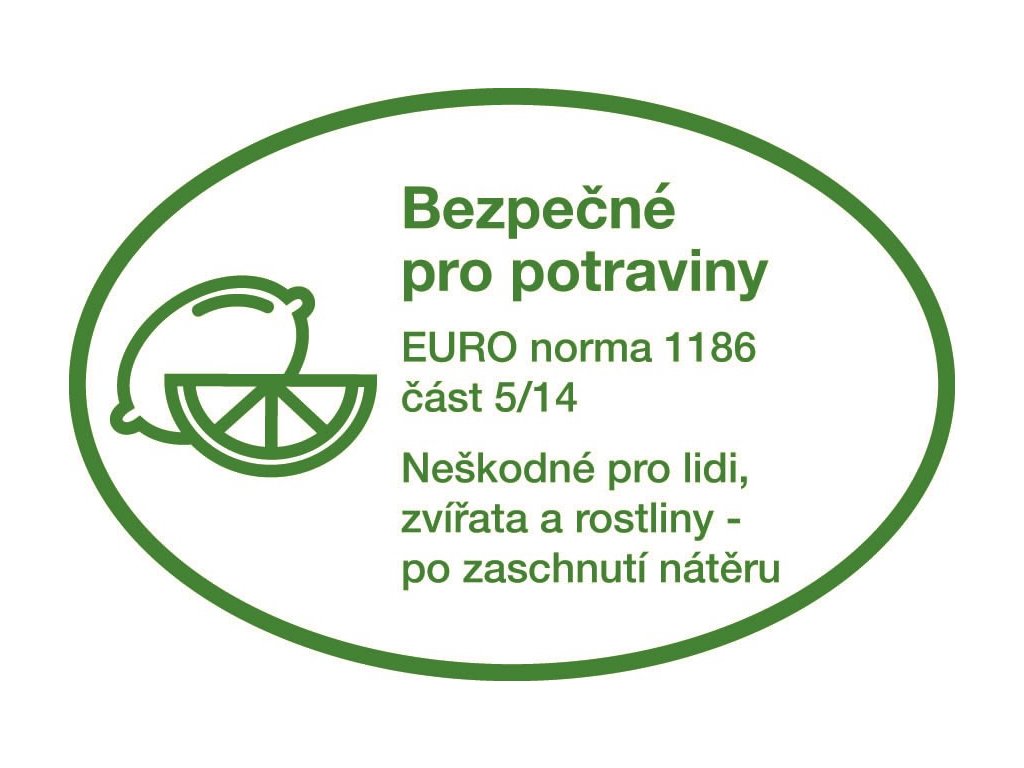 Produkt je odolný vůči slinám a potu, je certifikovaný pro styk s potravinami.