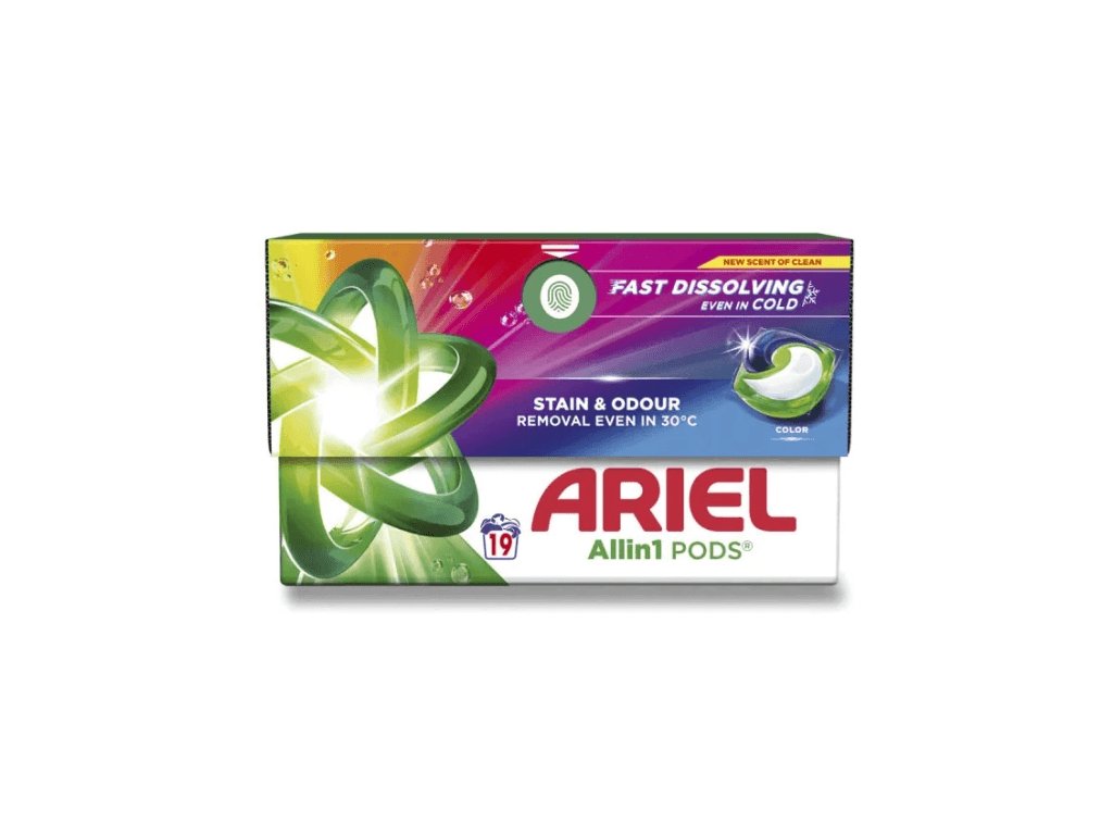Ariel All in 1 Pods Color jsou praktické gelové kapsle určené pro efektivní praní barevného prádla. Díky inovativní technologii s několika oddělenými komorami kombinují více účinků v jednom kroku – odstraňují skvrny, chrání a rozjasňují barvy, a zanechávají prádlo svěže voňavé. Kapsle se zcela rozpustí i při nízkých teplotách a usnadňují dávkování bez rizika plýtvání pracím prostředkem.