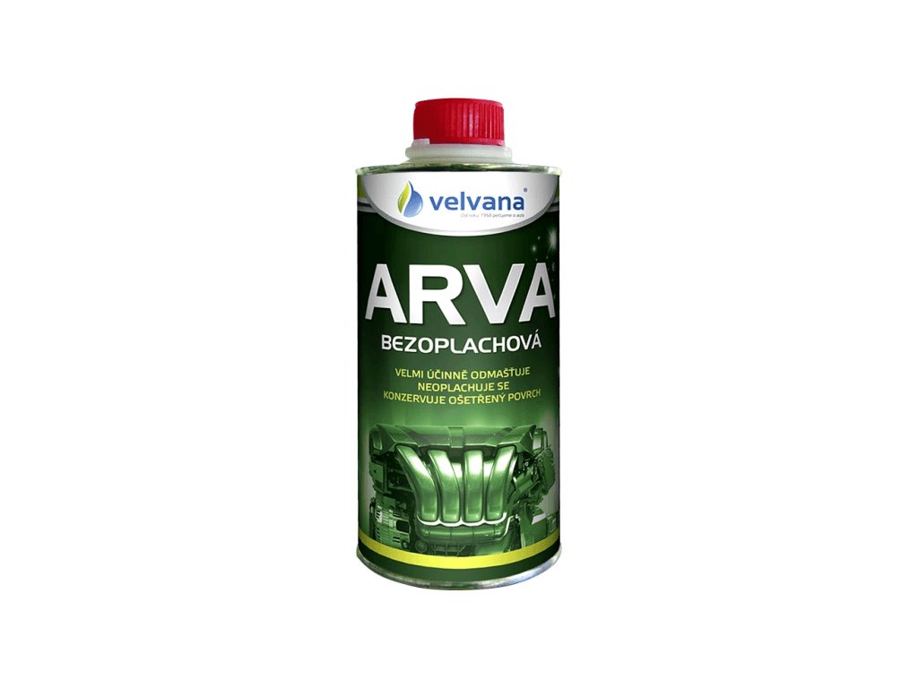 ARVA Bezoplachová je velmi účinný přípravek pro studené bezoplachové odmašťování a čištění kovových materiálů a lakovaných povrchů v autoopravárenství, servisech, údržbě vozového parku, v kovovýrobě a strojírenském průmyslu. ARVA bezoplachová odstraňuje nečistoty a ošetřený povrch chrání před korozí.