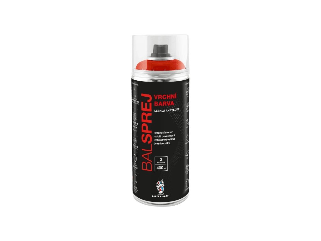 BALSPREJ je univerzální lesklá vrchní barva ve spreji použitelná k nátěrům dřeva, kovu, karoserií, některých umělých hmot. Vyniká vydatností, je rychleschnoucí, po nástřiku nestéká. Je odolná proti povětrnostním vlivům a korozi. Je přestříkatelná Bezbarvým akrylovým lakem ve spreji.
