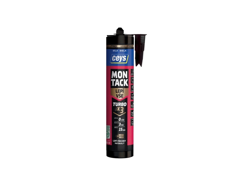 Ceys Montack Turbo je vysoce výkonné montážní lepidlo navržené pro rychlé a silné lepení širokého spektra materiálů. Díky technologii Double Grip nabízí okamžitou přilnavost a pevnost již po 15 minutách, což z něj činí ideální volbu pro náročné aplikace v interiéru i exteriéru.