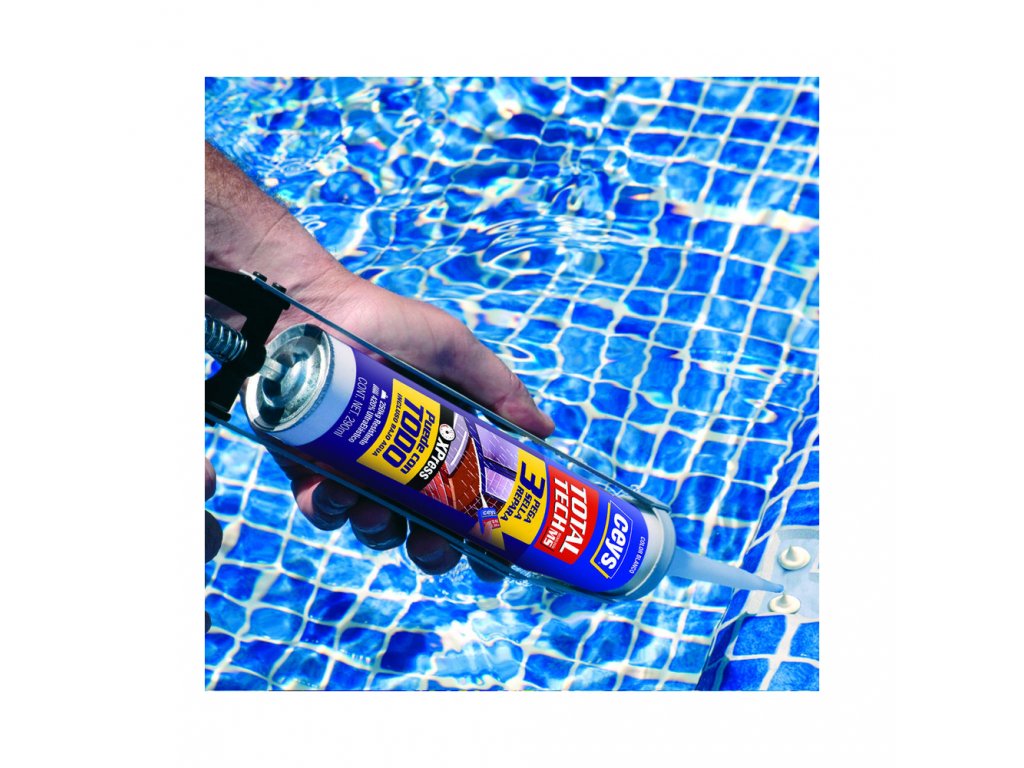 Pro lepení mozaiky v bazénech. Utěsnění nepropustných spár. Utěsnění dilatačních spár. Utěsnění a lepení potrubí z PVC. Utěsnění v kanalizacích a odtokových potrubí. Lepení sendvičových desek. Lepení a utěsnění sanitárních zařízení. Lepení izolačních desek. Lepení a utěsnění skleněných dveřích. Lepení zrcadel. Lepení hliníkových profilů. Utěsnění skel a oken. Dočasná oprava prasklin, trhlin a pórů ve skimmeru, zařízení na čištění dna atd. Instalace světlíků. Průmyslová karoserie. Lepení stavebního materiálu. Opravy v karavanech a lodích atd...