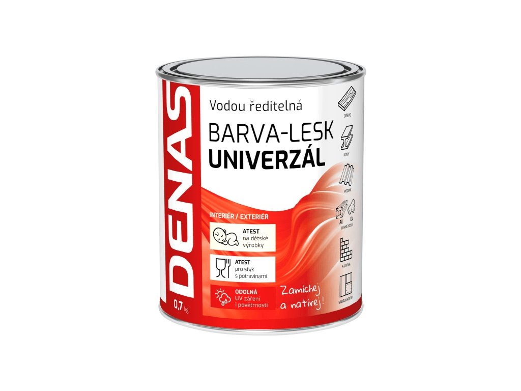DENAS UNIVERZÁL je vrchní vodou ředitelná barva na nátěry stavební prvků a konstrukcí ze dřeva, kovu, staviv, čerstvého pozinkovaného plechu i pozinkovaných střešních šablon, hliníku, některých druhů plastů, umakartu, keramických obkladů s přídavkem silanu, sádrokartonu. Splňuje normu povrchových úprav výrobků a hraček pro děti od 0-3 let (ČSN EN 71, část 3) a je vhodný pro styk s potravinami. Nátěry mají vynikající odolnost, nekřídují, ani nekřehnou vlivem působení UV záření a povětrnosti, jsou odolné působení čisticích přípravků užívaným v domácnosti. Natřené povrchy jsou extrémně mechanicky odolné a vykazují dlouhou životnost v interiéru i exteriéru.