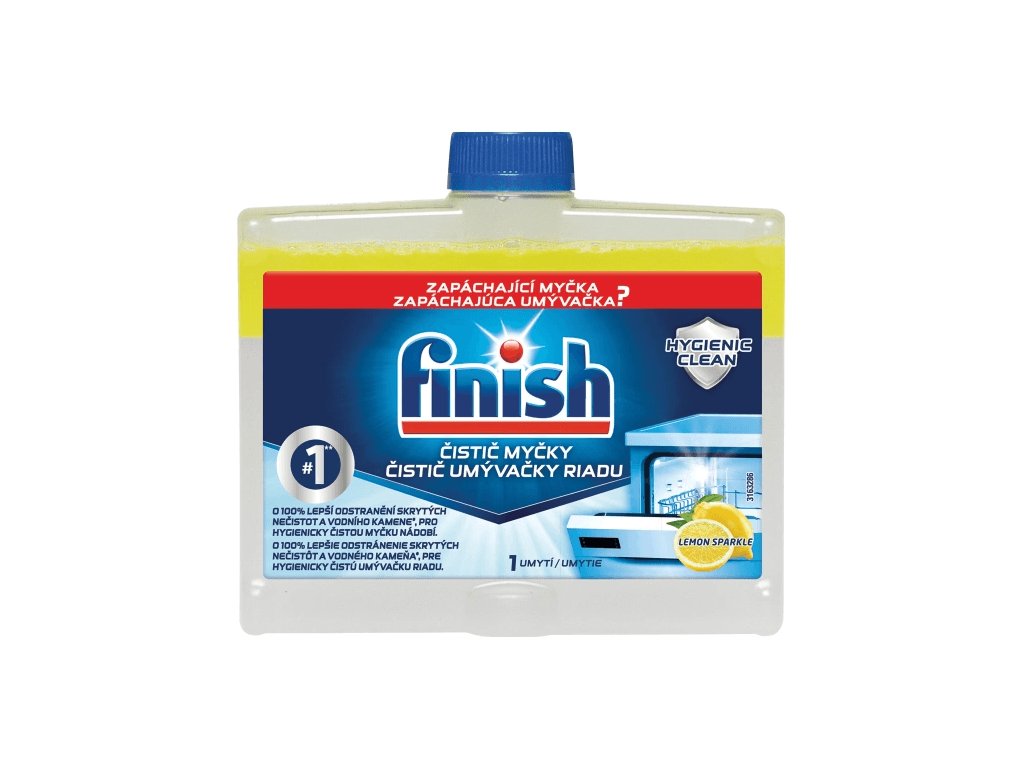 Hygienicky čistá myčka si hravě poradí i s opravdu silně mastným nádobím. O její čistotu ale musíme pečovat. Ve skrytých částech vaší myčky, jako jsou trubky, trysky a filtr, se totiž mohou usazovat nečistoty a vodní kámen, které vytvářejí nehygienické prostředí a často jsou zdrojem nepříjemného zápachu. O všechny tyto neduhy se postará tekutý čistič myčky Finish. Myčce dokáže navrátit její původní zářivý vzhled a spolehlivě zabránit usazování vodního kamene. Radost pro oko i vaše nádobí.