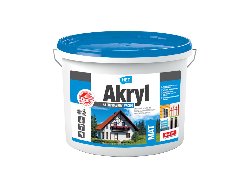 Matná univerzální vodou ředitelná vrchní krycí barva na kov, dřevo, beton, pozink, měd i sádrokarton.