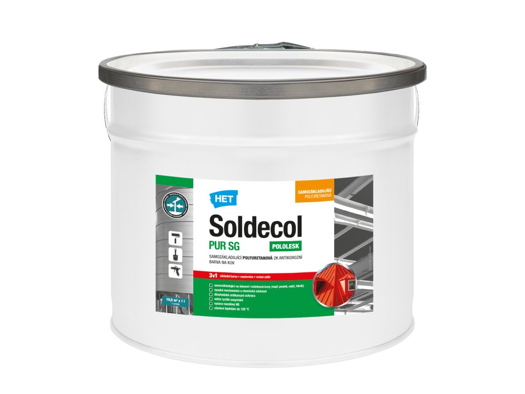 Samozákladující polyuretanová pololesklá 2K antikorozní barva na kov a tužidlo do nátěrových hmot Soldecol PUR. Univerzální dělník pro dokonalou ochranu kovových povrchů....