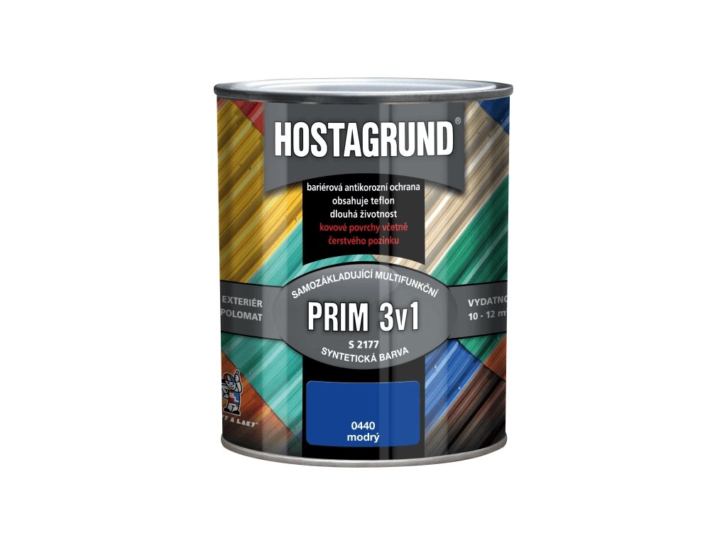 Jednovrstvá polomatná barva spojující vlastnosti základního antikorozního nátěru, mezivrstvy a současně vrchní barvy. Je určena k přímým nátěrům kovů ve venkovním i vnitřním prostředí. Barva na kov je ideální pro nátěry ocelových materiálů, zoxidovaných a čerstvých pozinkovaných povrchů jako např. střechy, kovové konstrukce, stožáry, ploty, sloupy, vrata apod. Barvu na kov je možné použít i pro nátěr savých podkladů jako např. dřevo a dřevotříska. Teflon obsažený v barvě vytvoří na povrchu nátěru nesmáčivou vrstvu, která brání nečistotám, spadům z ovzduší a vodě ulpět a působit na natřený povrch. Proto nátěr HOSTAGRUND 3v1 PRIM vykazuje dlouhou životnost, vynikající odolnost povětrnosti a dokonalou bariérovou ochranu. Je dostupný v široké škále odstínů a těm, kdo preferují individuální odstín, je k dispozici jeho tónovací báze pro možnost realizace dalších 5 tisíc odstínů.