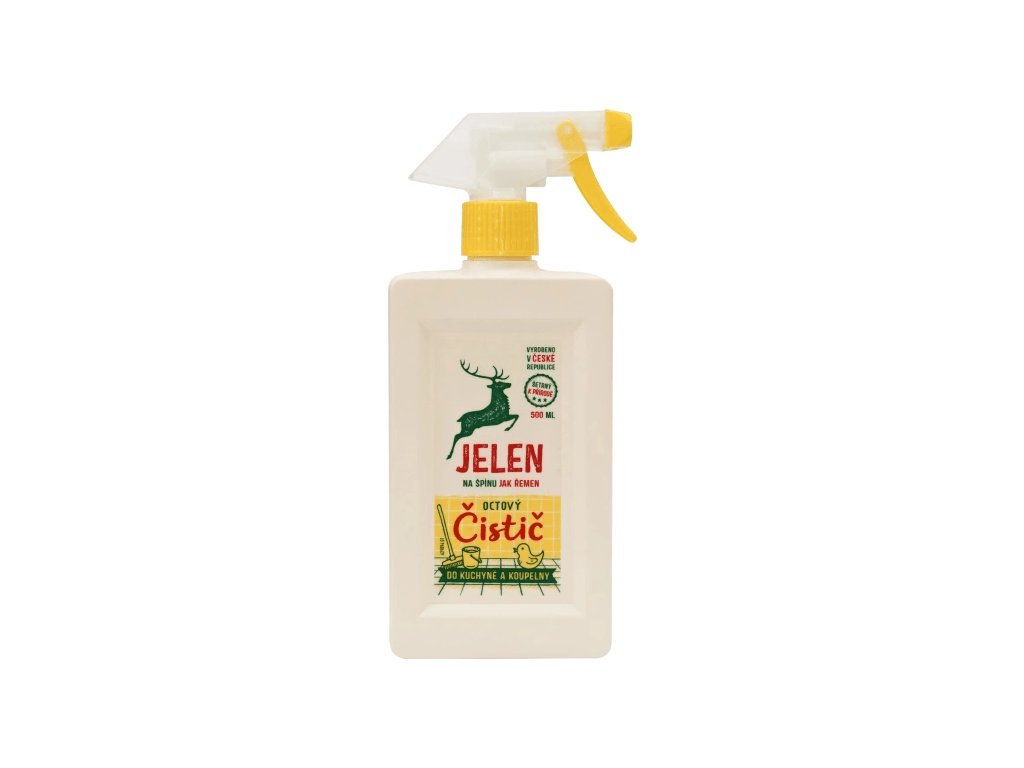 Jelen octový čistič na vodní kámen a urputnou špínu. Už Jelenova babička drhla vodní kámen a silnou špínu octem. Proto Jelenův čisič na bázi octa v kuchyni i koupelně tak dobře funguje. Nechtě jej po nanesení chvíli působit a pak teprve vyčistěte a opláchněte. Bude-li potřeba, vůni octa vyvětrejte. Vyvarujte se povrchů citlivých na kyseliny.