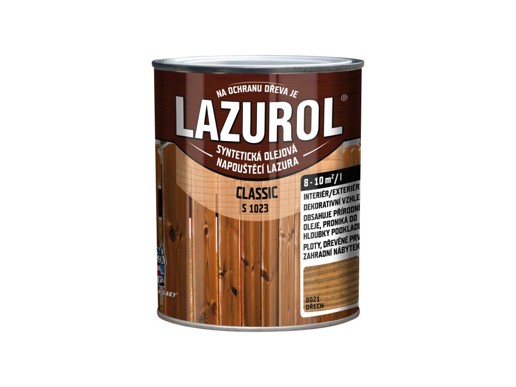 Lazurol Classic S1023 tenkovrstvá lazura na dřevo s obsahem olejů, 0021 ořech, 2,5 l + 0,5 l zdarma