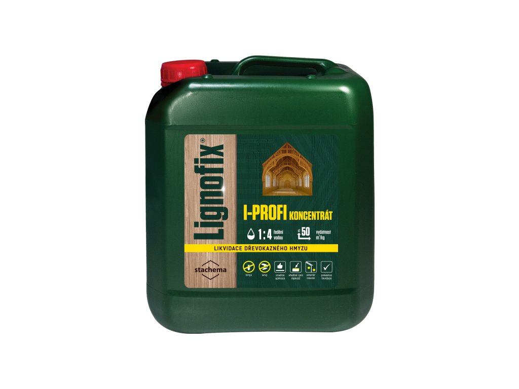 Lignofix I-profi je kapalný přípravek k ošetření dřeva napadeného dřevokazným hmyzem (červotoč, tesařík apod.) a k preventivnímu ošetření dřeva proti dřevokaznému hmyzu v interiérech (střešní konstrukce, obložení, schody, podlahy atd.) a v exteriérech bez přímého a trvalého kontaktu se zemí (střešní podbití, dřevěné stavby, ploty, krovy atd.).