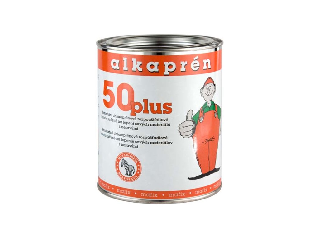 Alkaprén® 50 Plus je kaučukové beztoluenové kontaktní lepidlo světle béžové barvy, které je určeno na lepení savých materiálů s nesavými (např. guma - beton, kůže - guma, umakart - dřevo). Lepidlo je použitelné i na lepení střešních gumových hydroizolačných fólií k betonu, CETRIS - deskám, bitumenovým fóliím, apod.