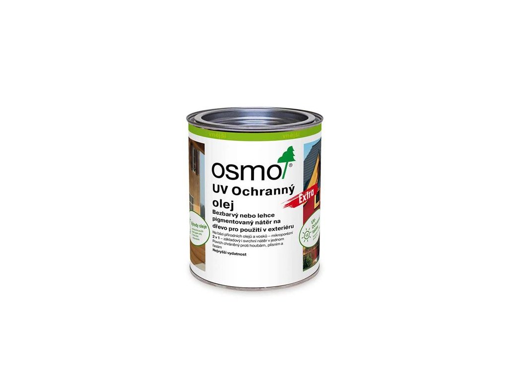 Jako konečný nátěr na již barevně upravené dřevo Osmo UV ochranný olej výrazně prodlužuje interval renovace; jako samostatný nátěr zamezuje procesu šednutí ochranným faktorem UV12 v porovnání se dřevem bez konečné úpravy.