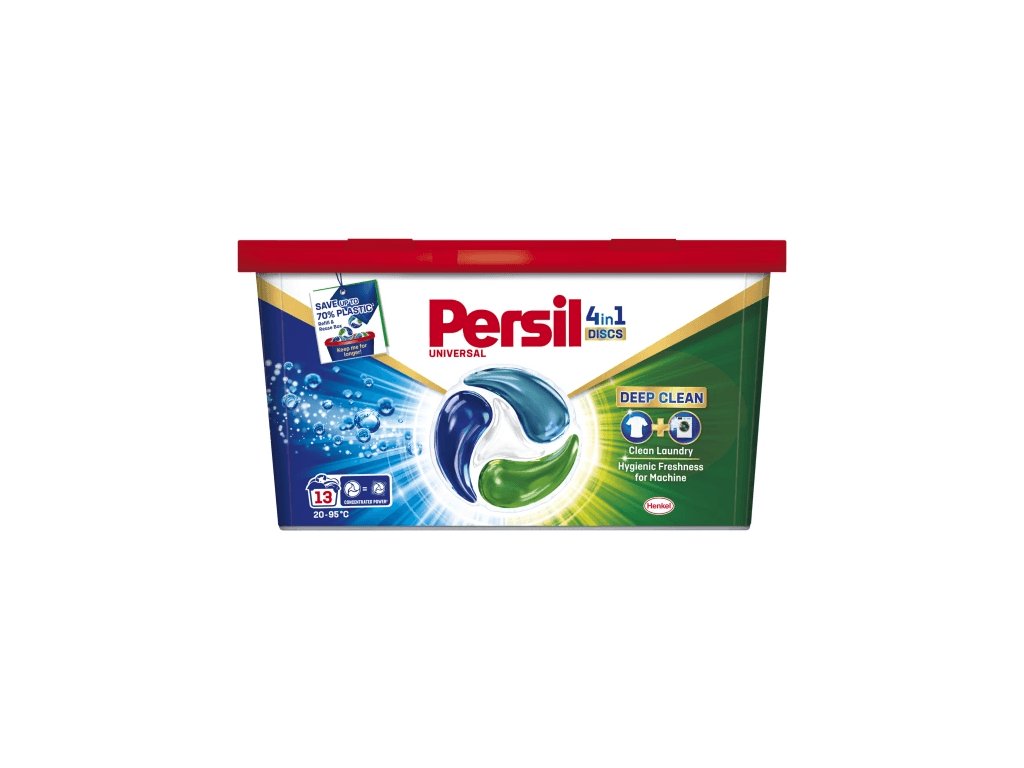 Persil kapsle 4v1 Discs Universal - Zažijte hloubkově čisté prádlo a hygienicky svěží pračku díky jedinečnému složení Persil. Výkonná čtyřkomorová gelová kapsle Persil je nyní kompaktovaná pro vynikající výkon a nižší dopad na životní prostředí díky nižšímu množství použitých materiálů.