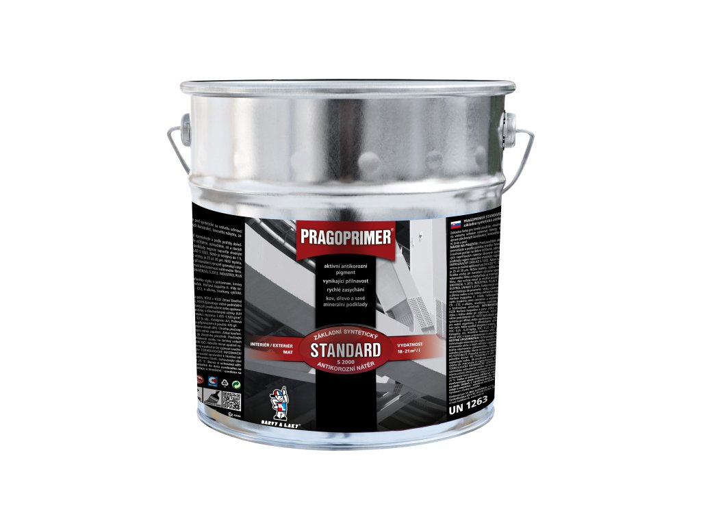 Pragoprimer Standard S2000 je univerzální základní barva na kov a savé podklady pro vnitřní i vnější prostředí, zejména pod syntetické a na vzduchu schnoucí nátěrové hmoty, k nátěrům např. plechových konstrukcí, strojů, kovového a dřevěného nábytku apod. Barva má vynikající antikorozní vlastnosti, velmi rychlé zasychání a univerzální aplikovatelnost.