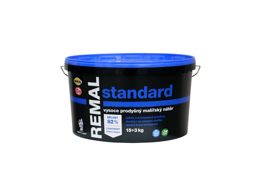 REMAL Standard je klasická přírodní vodouředitelná kaolínová malířská barva na zeď. Výborně kryje, je prodyšná, otěruvzdorná a má standardní bělost 82 %. Barva na zeď REMAL se používá k malování omítek, betonu, sádrokartonu, cetris desek, dřevotřísky i sanačních omítek v interiérech. Barva vykazuje odolnost proti oděru za mokra – měřeno dle ČSN EN ISO 11998 – třída 5. (klasifikace dle EN 13300).