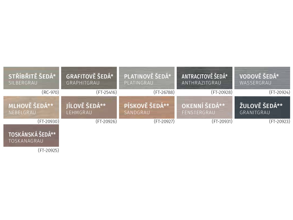 Vzhledem k nízké UV ochraně těchto barevných odstínů je třeba počítat s kratšími intervaly údržby.