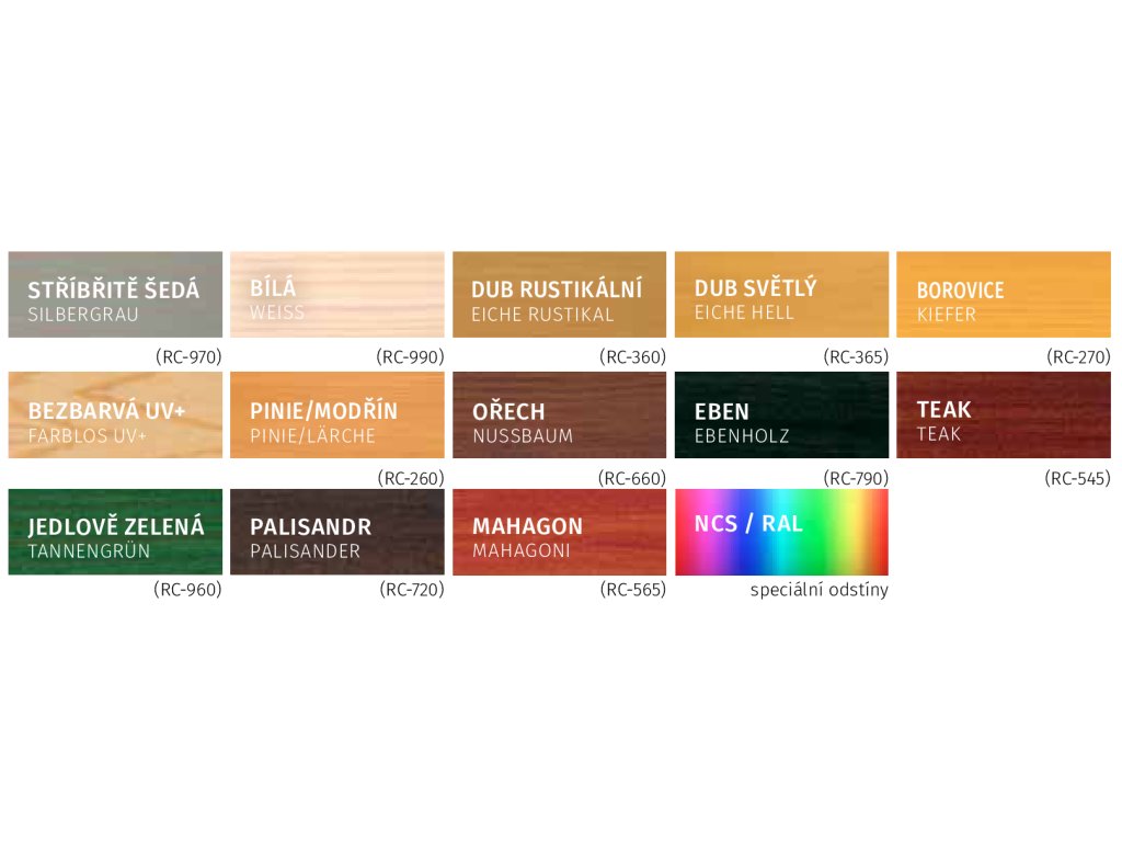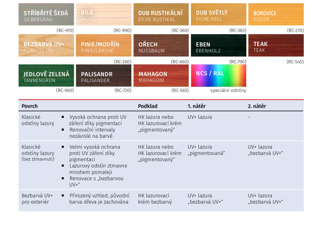 - Bezbarvou UV+ lze využít i jako obětovanou vrstvu u pigmentovaných variant pro zachování barevného odstínu dřeva.