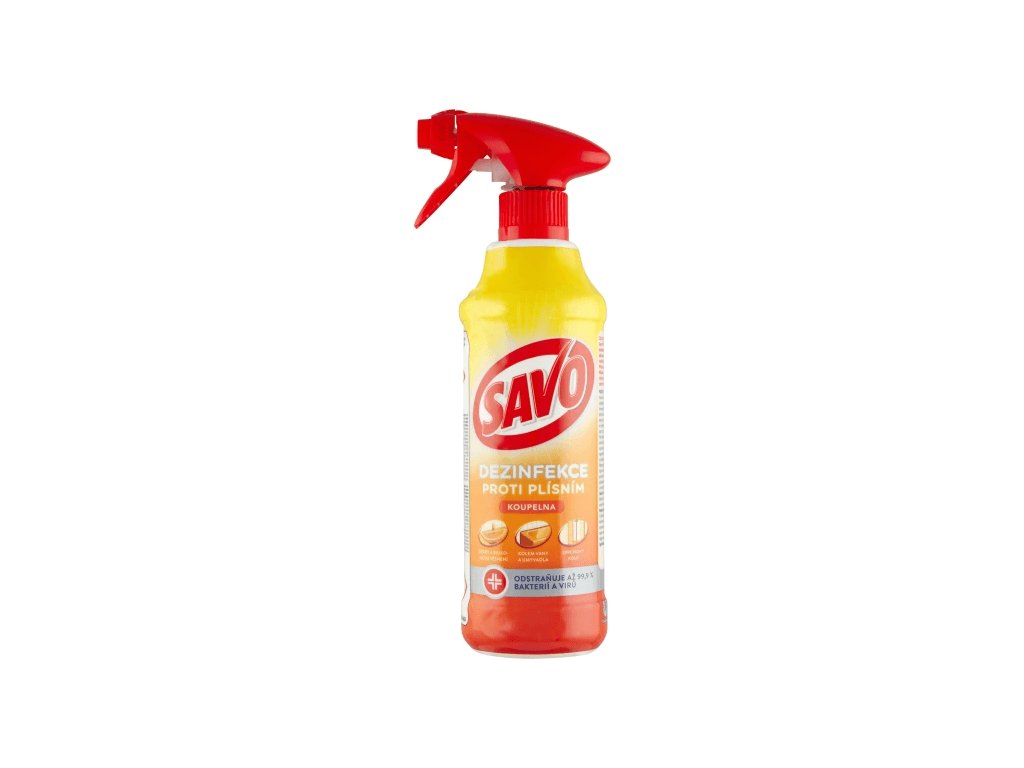 SAVO proti plísní Koupelna je speciální tekutý přípravek ve spreji na odstranění plísní a kvasinek, které se mohou vytvořit v podobě nežádoucích skvrn na okrajích vany, umyvadla, ve sprchovém koutě, kolem silikonového těsnění nebo ve spárách obkladů. Navíc povrch krásně vybělí a vydezinfikuje. Přípravek je mírně parfémovaný.