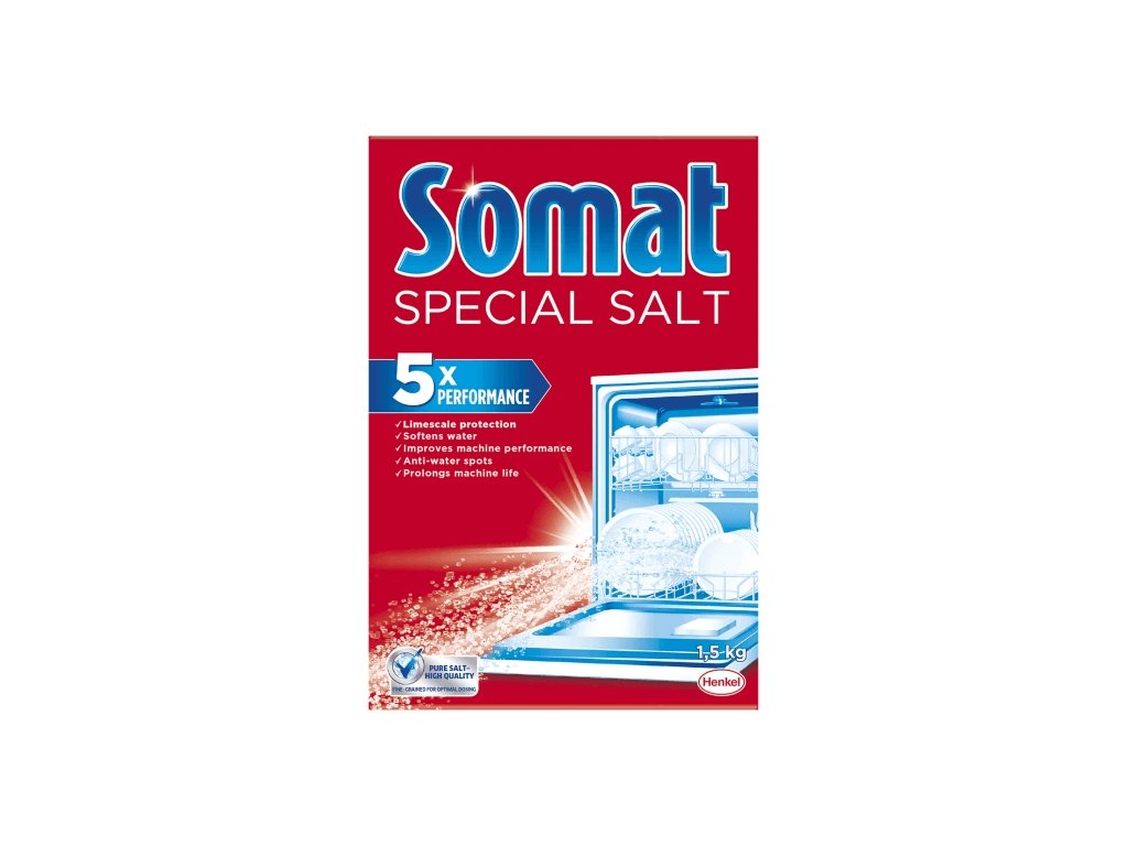 Sůl Somat s účinkem proti vodnímu kameni optimálně chrání myčku, ostřikovací ramena a trubky před vodním kamenem. Produkt pomáhá zajistit dokonalou funkci zařízení na změkčování vody, které mění kohoutkovou vodu na vodu měkkou. Díky tomu může mycí prostředek fungovat s maximální účinností a zabraňuje se škodlivému usazování vodního kamene.