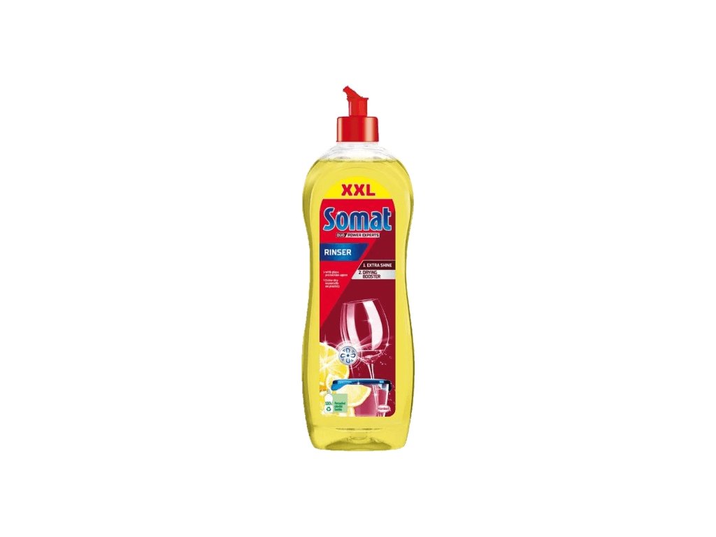Leštidlo Somat Rinser dává Vašemu nádobí zářivý jasný lesk. Leštidlo Somat Rinser změkčuje vodu, aby odtékala z nádobí rovnoměrně. Nádobí je tak rychleji suché a nezůstávají na něm kapky vody ani usazeniny vodního kamene. Zanechává Vaše nádobí zářivé a bez zaschlých vodních kapek. Pro dokonalé výsledky používejte Somat Rinser v kombinaci se standardními prostředky Somat (tablety, gel nebo prášek Somat Classic) a se solí Somat.