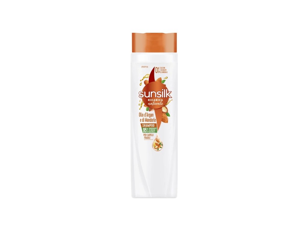 O arganovém oleji a organickém mandlovém oleji je známo, že jsou bohaté na vitamíny a jsou známé svými vyživujícími a hydratačními vlastnostmi. Složení s 98 % složek přírodního původu, bez silikonů a minerálních olejů, vyživuje a posiluje vlasy od kořínků ke konečkům, činí je viditelně silnými* a navrací jim přirozený lesk. 98% složek přírodního původu. *při kombinovaném použití šamponu a kondicionéru Sunsilk Argan & Mandlový olej ve srovnání s generickým šamponem.