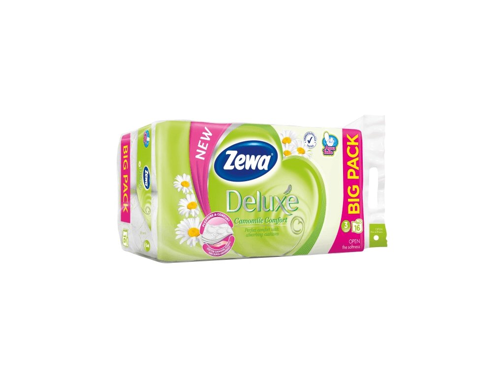 Bílý 3vrstvý toaletní papír se svěžím zeleným potiskem a skutečnou vůní heřmánku. I díky tomu se stal opravdovým favoritem v mnoha domácnostech. Logo Zewa potvrzuje na tomto jemném a zároveň pevném papíru proslulou kvalitu značky. Řada Deluxe je vyráběna z recyklovaného papíru.
