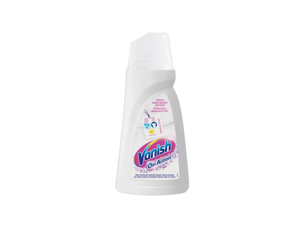 Vanish Oxi Action tekutý odstraňovač skvrn na bílé prádlo představuje účinný způsob udržování bělosti bílých látek bez poskvrny a zároveň odstraní skvrny již po prvním praní.