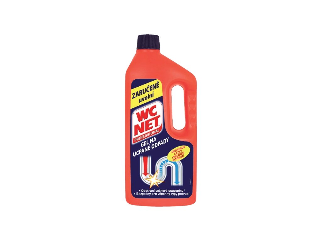 WC net professional gel na ucpané odpady 1 l je gelový přípravek na pročištění odpadů. Dobře rozpouští organické materiály, kuchyňské zbytky a vlasy. Odstraňuje veškeré usazeniny a chrání odpadní potrubí. Bezpečný pro všechny typy odpadů.